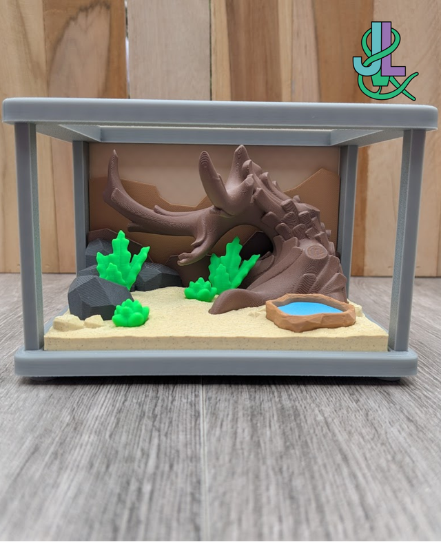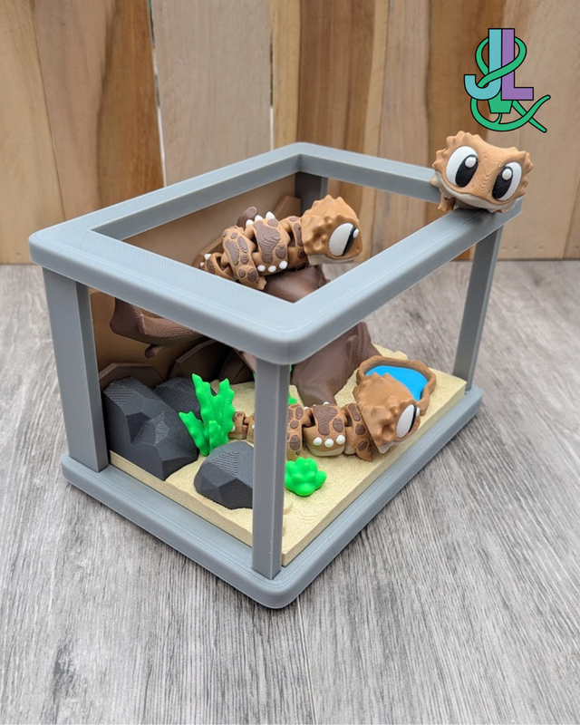 Geef je interieur een unieke en speelse uitstraling met dit 3D-geprinte baardagamen terrarium, inclusief drie schattige baardagamen! Perfect voor reptielenliefhebbers, kinderen of als origineel cadeau.